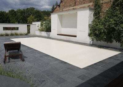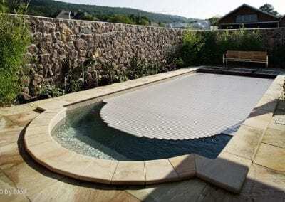 Покриття для басейнів Rollo Cover® суцільним килимом покриває басейн, надаючи йому закінчений вигляд. Не маючи зовнішніх конструкцій, він не псує архітектуру басейну і навколишній ландшафт. Rollo cover® знижує випаровування води басейну більш ніж на 90%, перешкоджаючи вивітрюванню хімічних препаратів і охолодженню води вночі, або в негоду.